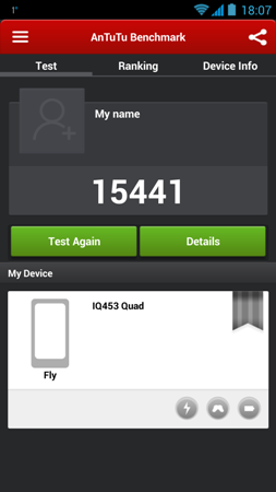 Сенсорный дисплей Fly Luminor IQ453 чутко реагирует на касания пользователя. По результатам AnTuTu Tester мультитач поддерживает до 5 одновременных прикосновений.