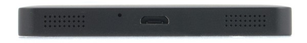Посередине нижней грани девайса располагается порт microUSB. Справа от него можно увидеть микрофон и многочисленные отверстия единственного мультимедийного динамика. Слева от порта находятся точно такие же отверстия. Динамика под ними нет, они находятся тут только для симметрии.