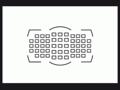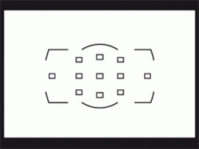 На рисунке ниже, не входящем в число типичных для просмотра через видоискатель, показано положение всей возможной информации, включая 51 точку автофокусировки. Nikon ясно дал понять, что они не используют гравировку для обозначения точек автофокусировки, а вся информация отображается при помощи жидких кристаллов, поэтому, когда точечная автофокусировка не активена, нет вредного воздействия на экран фокусировки. Присутствует опция изменения яркости точек автофокусировки. Эта опция очень полезна, при съемке на ярком свете с высокочувствительной линзой или съемке мерцающих объектов, быстроразвивающихся, спортивных событий.
