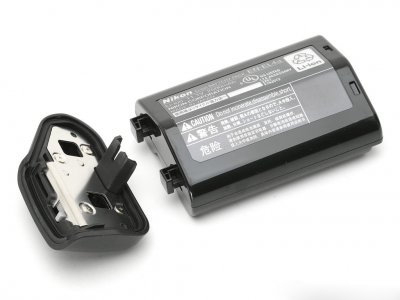 В D3X используется та же батарея EN-EL4a, как и в D3. Это обновленный вариант EN-EL4, которая используется в D2X. EN-EL4a - элементы мощностью 2500 мА /ч (более, чем в EN-EL4 - 1900 мАч) на 11,1В , 27,8 Вт/ч. Так же, как EN-EL4 батарея содержит устройство, которое используется для фиксирования аккумулятора при сборке, зарядке и функционировании (см. изображение ниже). Как вы можете видеть на изображениях батарейного отсека установлена одна батарея, однако удобно, если у вас под рукой несколько батарей.