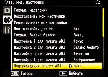 Главные индивидуальные настройки настраиваются во второй группе меню.