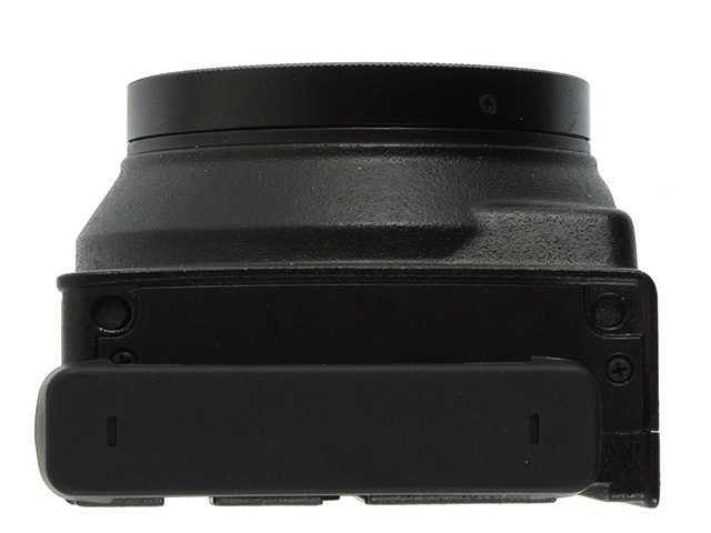 Если взглянуть на левую сторону корпуса, без установленного электронно-оптического модуля, то можно увидеть второе ушко для ремня, солидный многоконтактный разъем и направляющие салазки.
