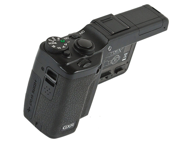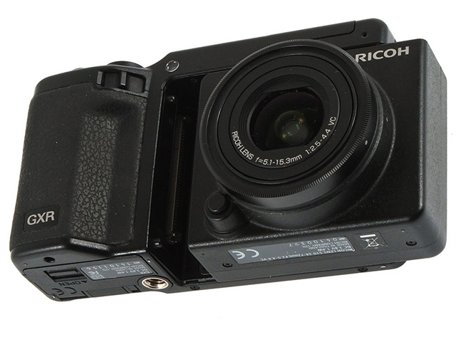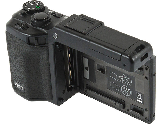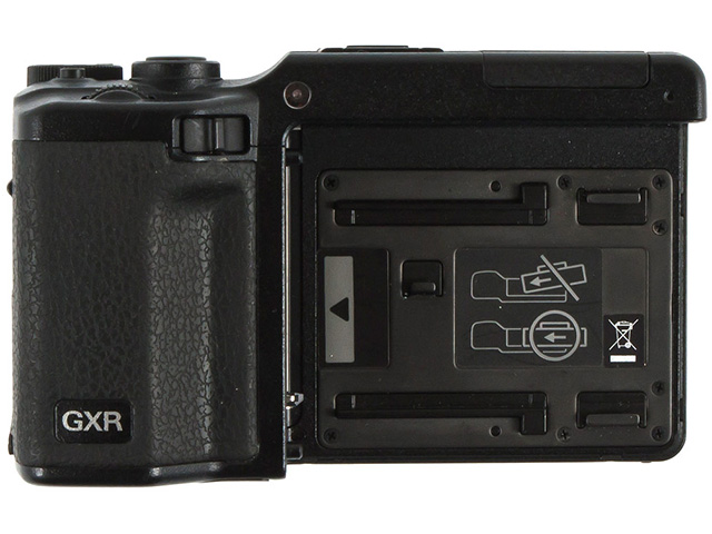 Видеоразъемы и порт USB у Ricoh GXR размещены на правой стороне, под крышкой. Конструкция крышки обеспечивает повышенную защиту разъемов, каждое гнездо имеет небольшую резиновую заглушку, практически исключающую загрязнение миниатюрных контактов. В верхней части панели имеется ушко для ремня.