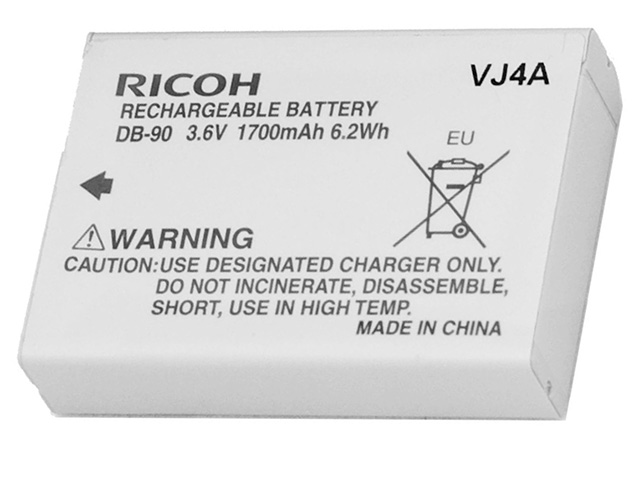 Площадь нижней грани намного меньше, чем у обычных фотокамер. На ней нашлось место для люка аккумуляторного отсека и металлического штативного гнезда. Эти элементы смещены в правую сторону. Карта памяти устанавливается рядом с аккумулятором, как у большинства компактов. Если вы установите камеру на штатив, то доступ к батарее и карте памяти будет заблокирован. В аппарате используется фирменный аккумулятор Ricoh DB-90.