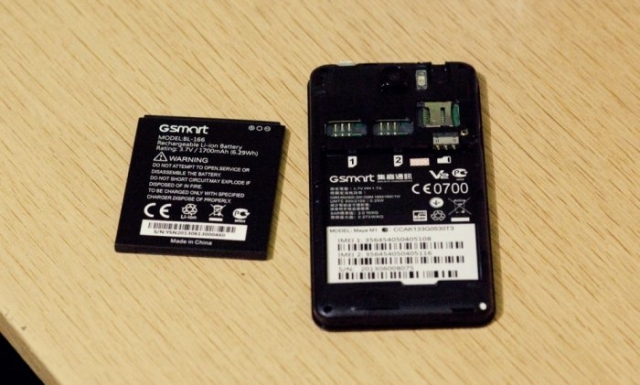 Под задней крышкой расположены съемный аккумулятор, два слота для сим-карт и слот для карты памяти. При установке сим-карт нужно помнить о том, что 3G можно пользоваться только с карточки, находящейся в первом слоте.