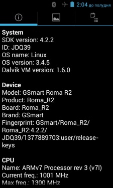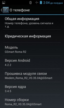 Gigabyte GSmart Roma R2 работает на Android 4.2.2, собственной оболочки нет.