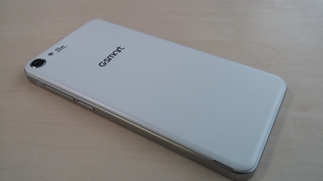 В левой верхней части тыльной панели смартфона располагается объектив основной камеры, немного правее находится светодиодная вспышка, а ещё правее можно увидеть надпись, информирующую пользователей о возможностях камеры. Почти посередине «спинки» Gigabyte GSmart Sierra S1 расположился логотип компании.