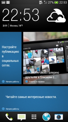 Разумеется, аппарат, в отличие от своего «старшего брата», обладает не такой мощной аппаратной платформой, не таким высоким разрешением экрана и меньшим объёмом внутренней памяти. Этот смартфон однозначно не подойдёт для заядлых «геймеров», но со всеми основными задачами и не слишком энергоёмкими играми HTC One mini справляется без проблем. Дисплей аппарата, хотя и уступает по своим характеристикам флагману, тем не менее, демонстрирует качественное чёткое и детализированное изображение.