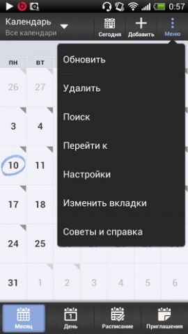 Предустановленный в HTC One X+ календарь удобный и функциональный. Отображаться он может в виде дня, недели, месяца или списка событий. При создании новой записи в календаре задаётся её название, место, срок, повтор (ежегодно, ежемесячно, раз в неделю, ежедневно), тип сигнала. При наступлении события в сервисной строке появляется напоминание.