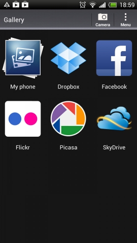В галерею смартфона попадают все картинки и фотографии, находящиеся в памяти устройства. Все изображения рассортированы по папкам. Владелец смартфона может создавать скрытые альбомы, недоступные другим пользователям. Картинки можно просматривать как слайд-шоу с музыкальным сопровождением. Любое изображение можно установить в качестве фонового рисунка для рабочего стола, отправить в социальную сеть, передать по Bluetooth или отправить в сообщении.