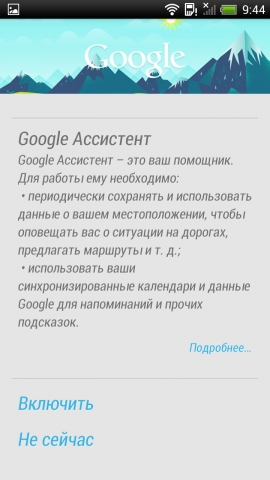 Встроенный виртуальный помощник Google Now на основе собранной о пользователе смартфона информации (местоположении, поисковых запросах в Интернете) предоставляет полезную информацию, например, путь до дома, результаты спортивных матчей, прогноз погоды, расписание самолётов и тому подобное.