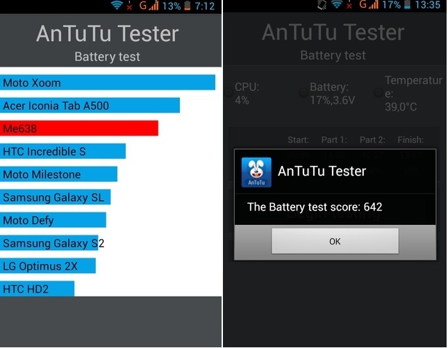 Устройство оснащено аккумулятором емкостью 2150 мАч. Huawei Ascend G610 можно разрядить за день активного использования. В режиме среднего использования смартфон проработал два дня, от одного заряда аккумулятора. Программа для тестирования аккумулятора Antutu Tester показала результат в 638 баллов.