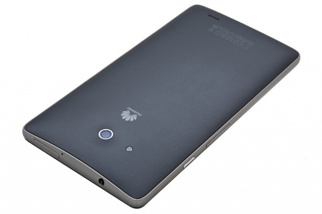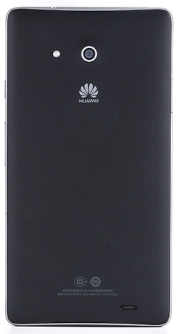 На тыльной панели Huawei Ascend Mate находятся логотип производителя, объектив основной камеры, фотовспышка и прорезь динамика.