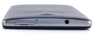 На нижнем торце находятся порт microUSB и отверстие микрофона. На верхнем торце расположены стандартный аудиовыход и слот для SIM-карты, прикрытый плотной заглушкой.