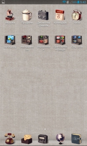 Над кнопками управления разместились 5 иконок наиболее часто используемых программ – номеронабиратель, сообщения, клиент электронной почты, браузер и телефонная книга.