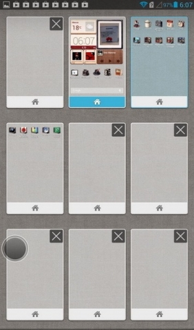 Оболочка от Huawei отличается полным отсутствием главного меню. Все ярлыки приложений, папки и виджеты размещаются на девяти рабочих столах. В одну папку может помещаться 25 ярлыков. Количество рабочих столов можно уменьшить.