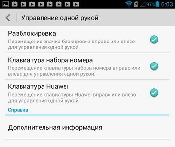Учитывая крупные размеры смартфона, разработчики предусмотрели отдельный пункт в настройках, призванный решить проблему управления устройством. Этот раздел позволяет адаптировать некоторые приложения специально для возможности комфортной работы одной рукой. Например, кнопки клавиатуры, калькулятора или номеронабирателя будут смещены в левую или правую часть экрана в зависимости от того, какой рукой пользователю удобнее работать с устройством.
