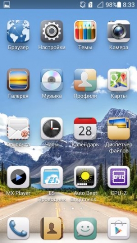 Основным отличием китайской оболочки от «голой» Android состоит в том, что в нём отсутствует меню приложений. Ярлыки всех программ и игр располагаются прямо на рабочих столах. Тут же располагаются папки и виджеты.