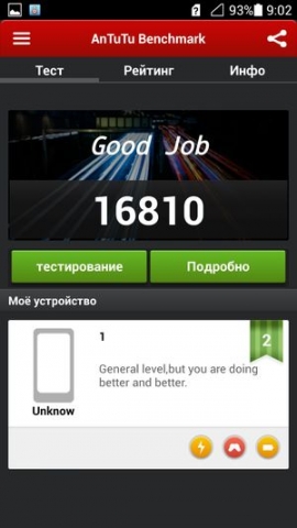 В синтетическом тесте AnTutu смартфон набирает 16810 баллов, в бенчмарке GeekBench – 1295 баллов, а в графическом тесте Epic Citadel аппарат демонстрирует результат 33,2 fps в режиме High Performance и 31,4 fps в режиме High Quality.