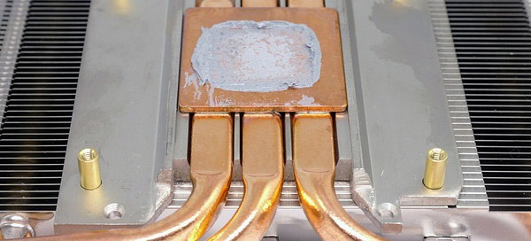 Тепловые трубки имеют диаметр 6 мм и контактируют с графическим процессором через медное основание. Медное основание и тепловые трубки не защищены от окисления.