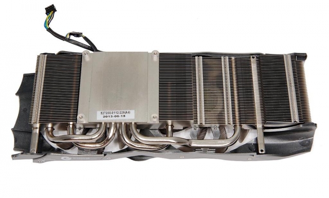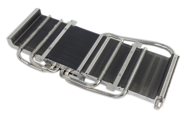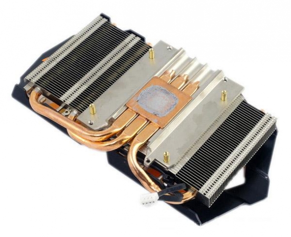 Система охлаждения видеокарты состоит из одного основного радиатора, пяти тепловых трубок и двух вентиляторов диаметром 100 мм.
