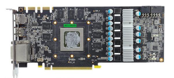 Из-за этого эффективность системы охлаждения может быть снижена. Микросхемы видеопамяти охлаждаются с помощью металлической рамки, которая закреплена на основном радиаторе. На силовых элементах цепи питания установлен отдельный радиатор. Для увеличения жесткости всей конструкции на верхнем крае печатной платы установлена специальная пластина.