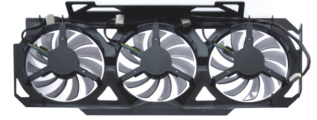 Радиатор обдувается двумя вентиляторами диаметром 85 мм. Вентиляторы крепятся к декоративному кожуху с необычным дизайном. Тепловые трубки отводят тепло с поверхности графического процессора через медное основание.