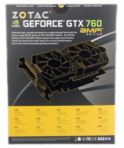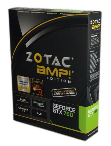 Zotac GeForce GTX 760 AMP! Edition частота процессора – 1183 МГц, частота памяти – 6940 МГц;