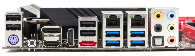 Один из разъемов USB 2.0 выделен красным цветом. Этот разъем называется Fatal1ty Mouse Port. Разъем предназначен для подключения мыши. С помощью программного обеспечения пользователь может менять частоту опроса сенсора у манипулятора, подключенного к этому разъему. Частота опроса сенсора может изменяться в пределах от 125 МГц до 1000 МГц.