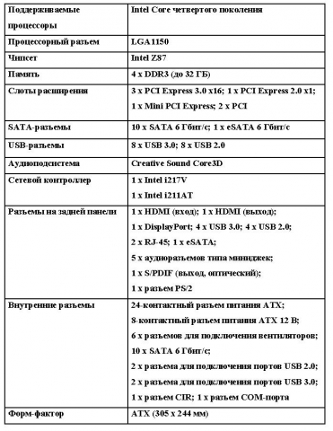 Ниже приведу таблицу с основными характеристиками материнской платы.