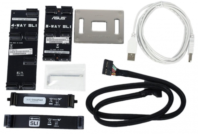 Все продукты линейки ROG поставляются в упаковке, оформленной в темно-красных тонах, но для данной платы сделано исключение. Дабы подчеркнуть эксклюзивность модели и выделить ее из основного ряда продуктов серии, цветовое оформление выполнено в черных тонах.