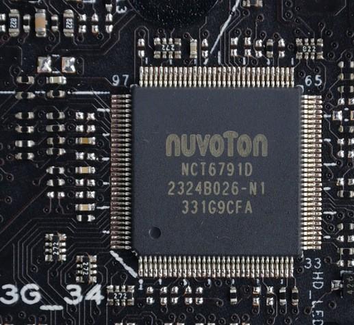К материнской плате можно подключить восемь вентиляторов. Из них два вентилятора системы охлаждения центрального процессора, а остальные шесть – корпусные. За работу корпусных вентиляторов и мониторинг отвечает контроллер NUVOTON NCT6791D.