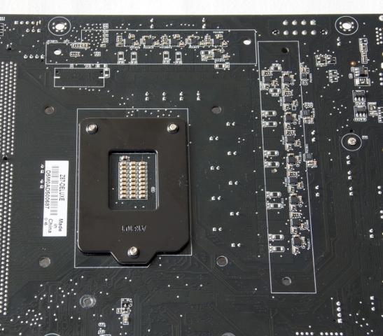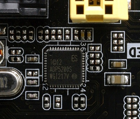 В каждой фазе используется два полевых транзистора и драйвер управления. Драйверы управления расположены с обратной стороны материнской платы и охлаждаются с помощью двух металлических пластин.