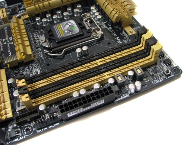 Разъемы окрашены в черный и золотой цвета и снабжены защелками только на верхнем крае. Благодаря такому решению видеокарта не будет мешать извлечению модулей.