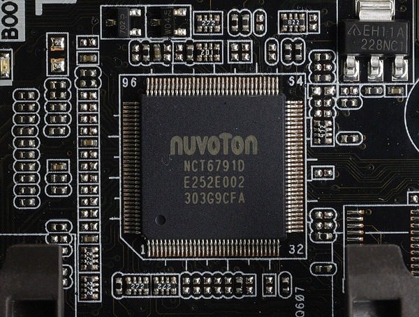К материнской плате можно подключить шесть вентиляторов. Из них два вентилятора системы охлаждения центрального процессора, а остальные четыре – корпусные. Управляет работой вентиляторов контроллер Nuvoton NCT6791D.