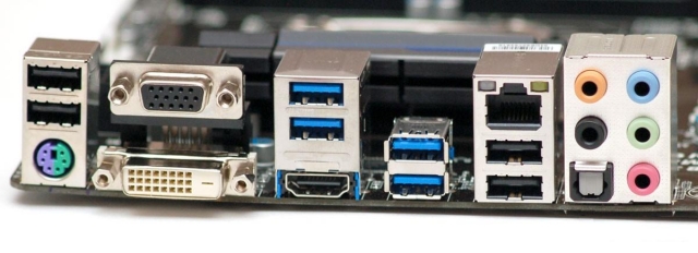 Помимо аудиовыходов и разъема LAN на интерфейсную панель материнской платы выведены следующие разъемы: