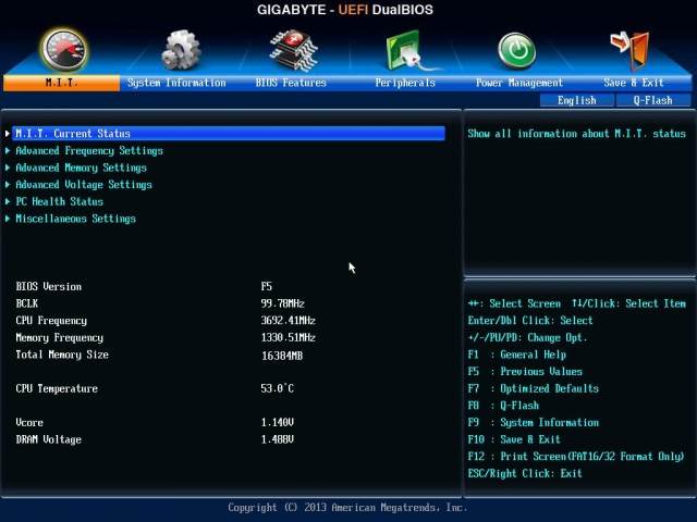 В отличие от материнских плат компании GIGABYTE на основе набора системной логики Z87 данная плата не может похвастаться новой оболочкой BIOS.