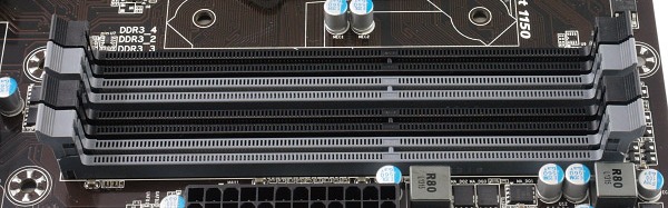 Четыре разъема DIMM расположенные справа от процессорного разъема позволят пользователю установить до 32 Гб оперативной памяти.