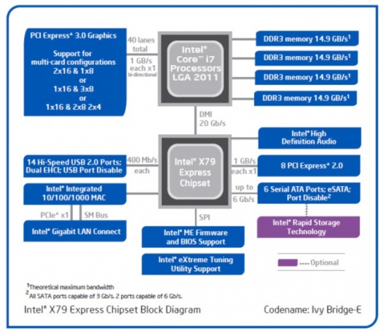 Перед тем как перейти непосредственно к тестированию кратко вспомним, что собой представляет платформа LGA2011. С момента появления платформы в 2011 году для нее был выпущен только один набор системной логики – Intel X79 Express, который с тех пор не претерпел каких либо изменений или улучшений. Набор системной логики обеспечивает работу: