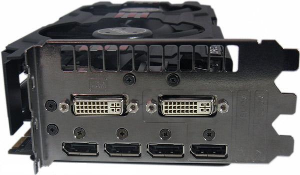 Из видеовыходов на карте присутствует два разъема DVI и четыре Display Port.