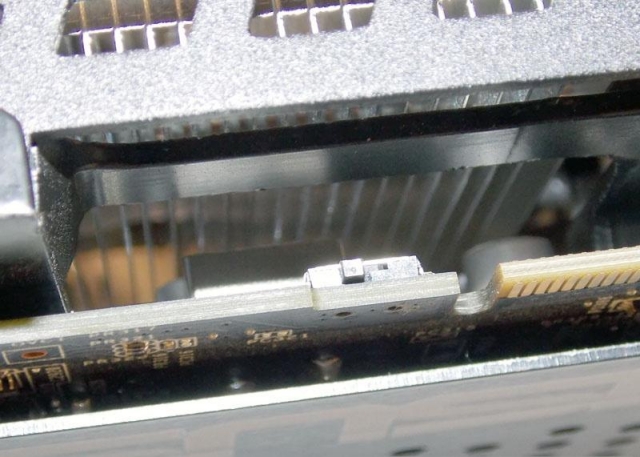 С его помощью пользователь может переключить один из разъемов DVI в режим Single Mode. В этом случае активируется четвертый разъем Display Port. Еще одна особенность данной видеокарты - наличие контактных площадок VGA HotWire.