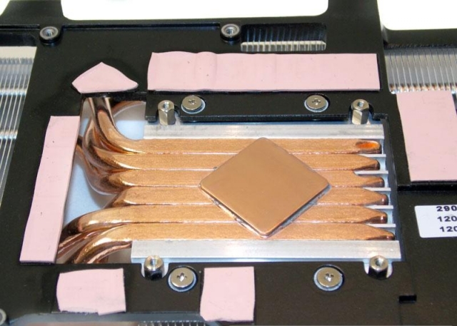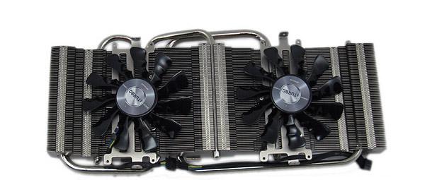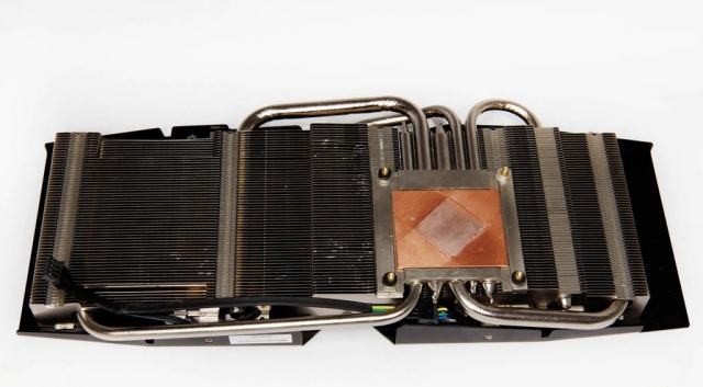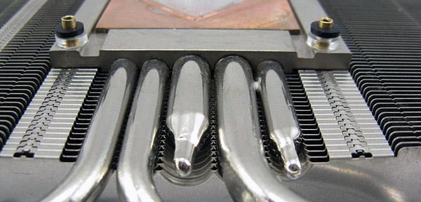 Трубки контактируют с графическим процессором через медное основание. Тепловые трубки защищены от окисления, а места контакта с ребрами радиатора пропаяны. По высоте система охлаждения не превышает двух слотов расширения.