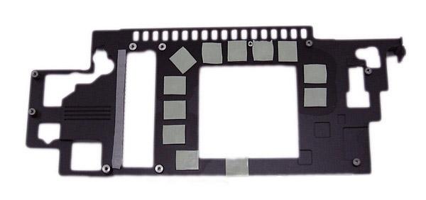 Микросхемы видеопамяти и силовые элементы в цепи питания охлаждаются с помощью металлической рамки.