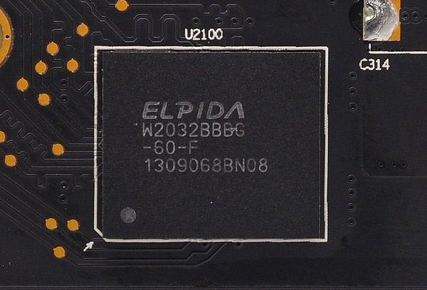 Графический процессор и видеопамять работают на частотах 925 МГц и 5500 МГц соответственно. Микросхемы видеопамяти производства Elpida имеют маркировку W2032BBBG-60-F.