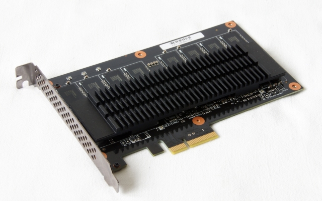 Твердотельный накопитель выполнен в виде печатной платы с интерфейсом PCI Express. С лицевой стороны накопитель закрыт декоративным металлическим кожухом с отверстиями для охлаждения.