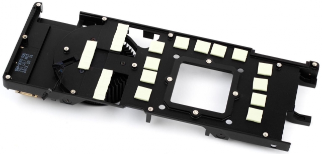 Единственное отличие от прошлых решений на базе графического процессора GK110 это то, что радиатор имеет черный цвет. В отличие от видеокарт AMD радиатор можно снять с металлической рамки, открутив четыре крепежных винта.