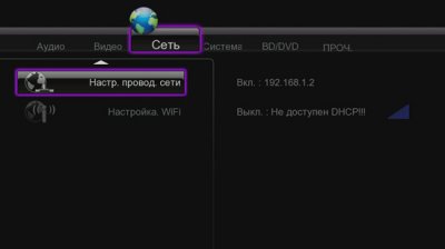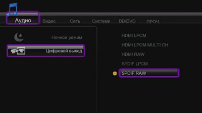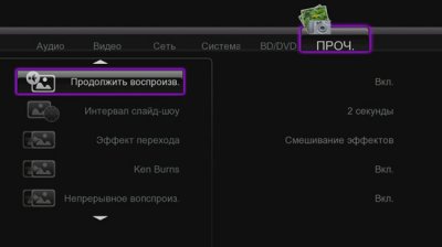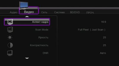 В разделе "Видео" присутствует достаточно опций для того чтобы плеер мог вывести изображение как на плазменную панель так и на crt телевизор. Помимо стандартных настроек, таких как контрастность, яркость, режим развертки, ТВ режим и аспект кадра присутствуют и более интересные функции, такие как режим DNR значительно улучшающий качество картинки и режим24p. Этот режим выводит картинку с частотой 24 кадра в секунду. К примеру, ТВ формат PAL выводит картинку с частотой 25 кадров в секунду, и картинка выглядит не так естественно.