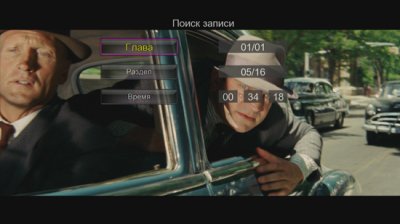 А теперь более подробно рассмотрим функции навигации по фильму. Навигацию удобно производить как привычной клавишей SKIP просто перепрыгивая на определенное время вперед или назад, а вот нажатие на кнопку TIME SEEK позволяет указать конкретное время или выбрать главу или раздел.