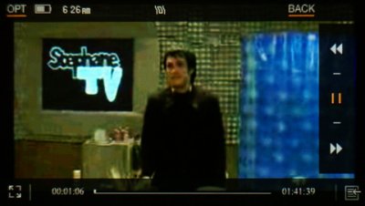 Возможности плеера стандартны. Есть перемотка, можно перемещаться в любое место фильма. Указывая пальцем участок на полосе прогресса. Есть возможность устанавливать закладки, причем несколько на один фильм. Также плеер запоминает место остановки в момент выключения или переходя на другую функцию.