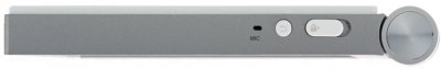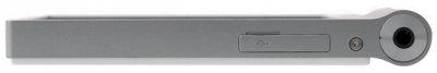 Верхняя грань несет на себе переключатель блокировки, клавишу возврата на один пункт назад и отверстие встроенного микрофона. На левой, противоположной от цилиндра, грани расположена клавиша управления громкостью звука и кнопка для включения или отключения плеера. При таком расположении управляющих элементов, управлять плеером одной рукой будет немного неудобно. Да и нажимать клавиши «вслепую», например, когда плеер находится в кармане, не всегда получится.